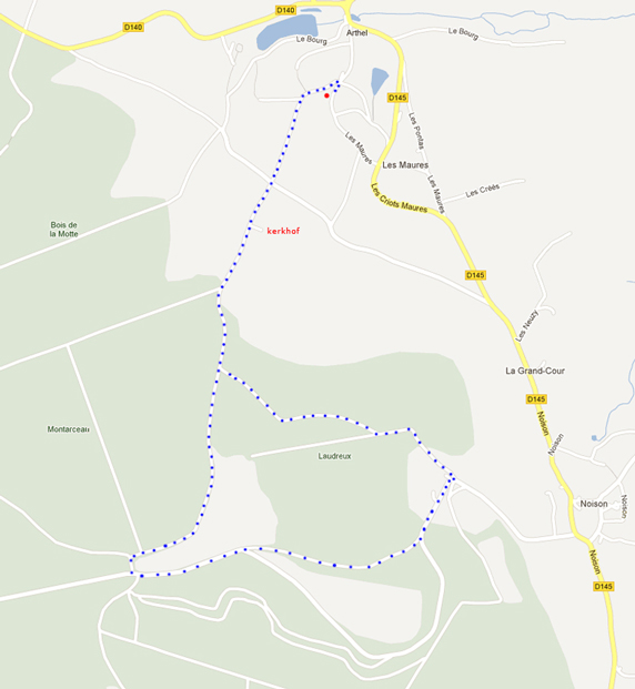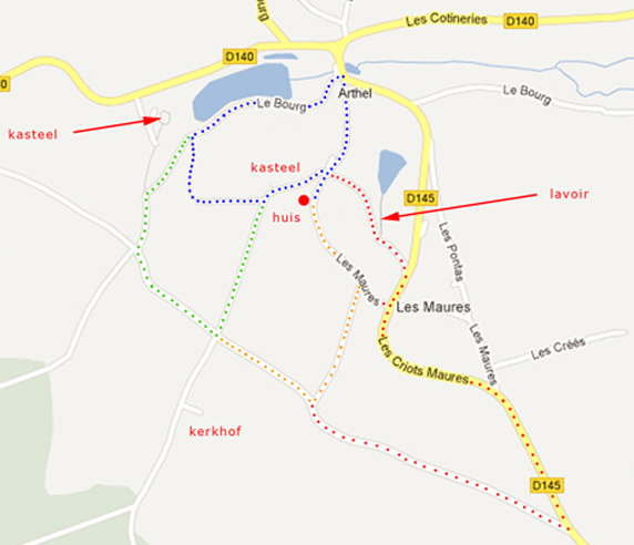 Wandelingen rondom het huis in Arthel, van 10 tot 30 minuten.